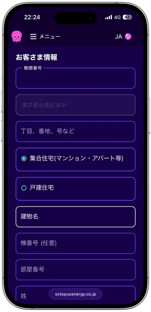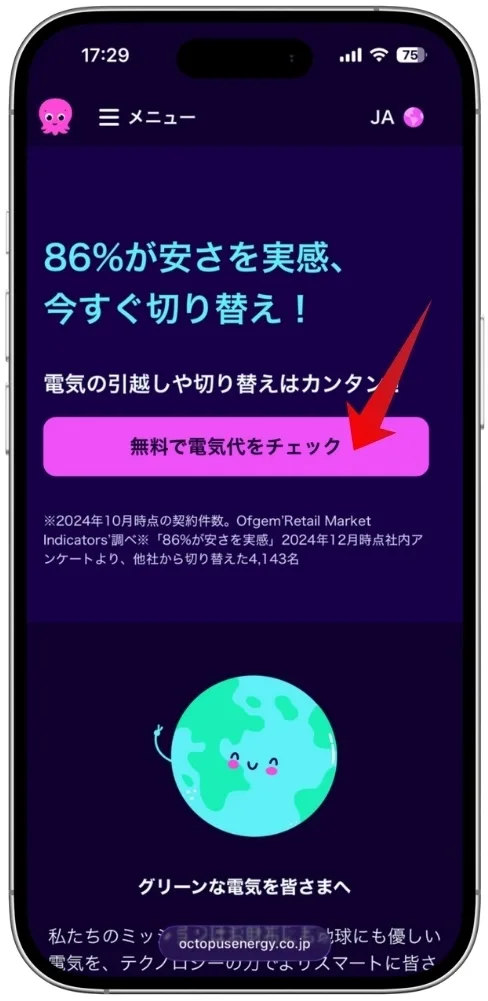まず、こちらからオクトパスエナジーの公式サイトにアクセスします。