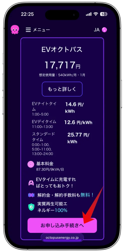 EVの料金プランは1つしかないので、「EVオクトパス」が表示されます。