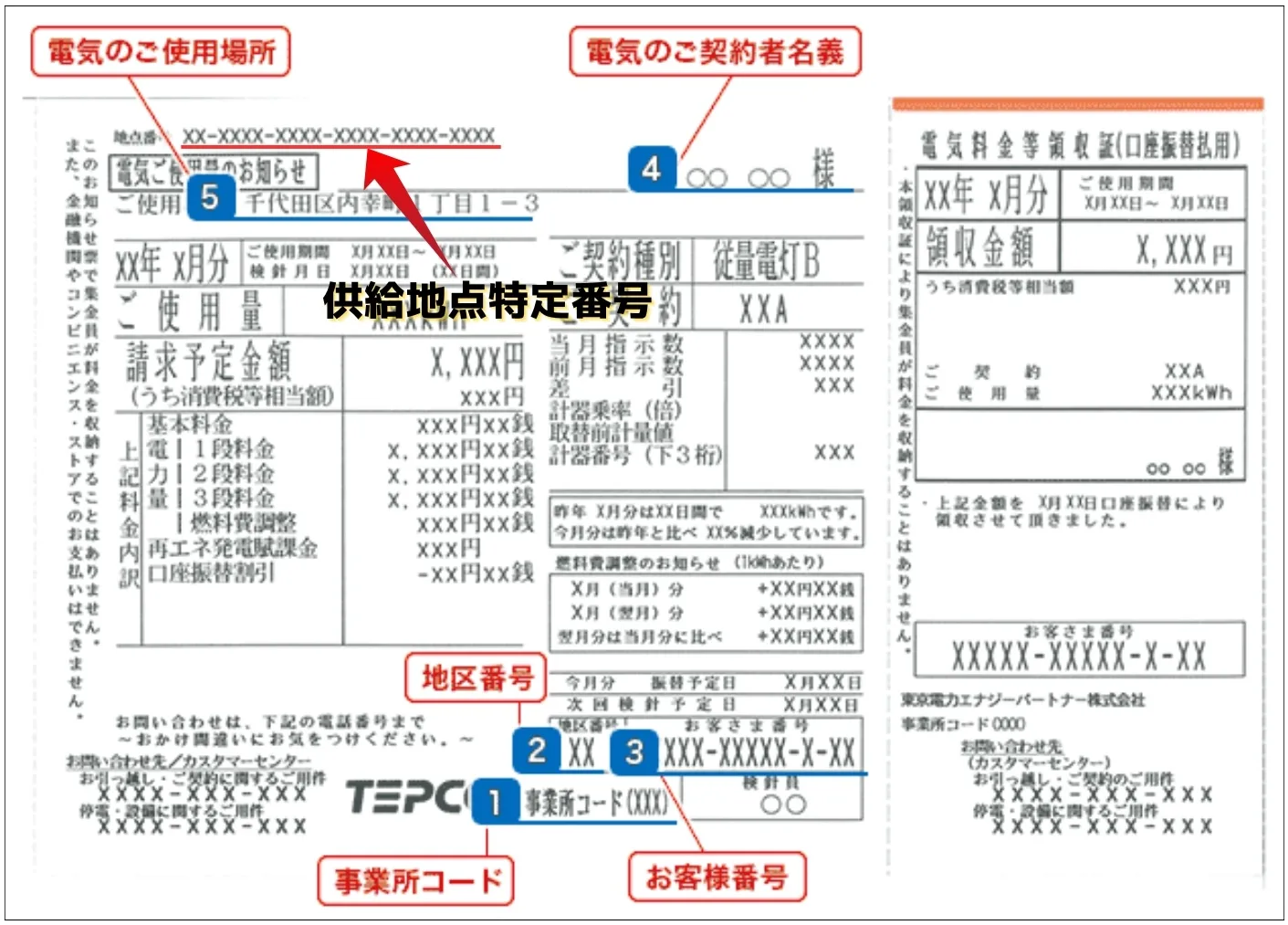 • 供給地点番号:電気メーターごとに割り振られる番号