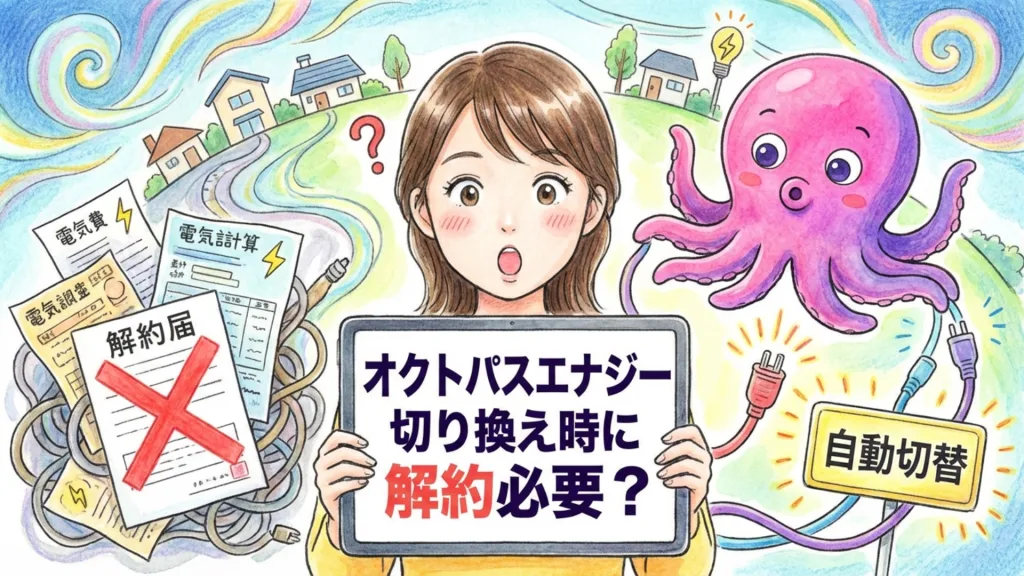 オクトパスエナジーへ切り換えする際「現在の電力会社の解約手続きは必要なのか?」、「解約による違約金や解約金はかかるのか?」といった不安を感じる方も多いでしょう。 この記事でわかること 現在の電力会社への解約手続きは必要ない。 解約はオクト... -